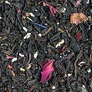 Zutaten: Schwarzer Tee Ceylon, Brombeerblätter, Hagebuttenschalen, Granberry- und Heidelbeeren, Holunderbeeren, Kornblumenblüten, natürliches Brombeeraroma