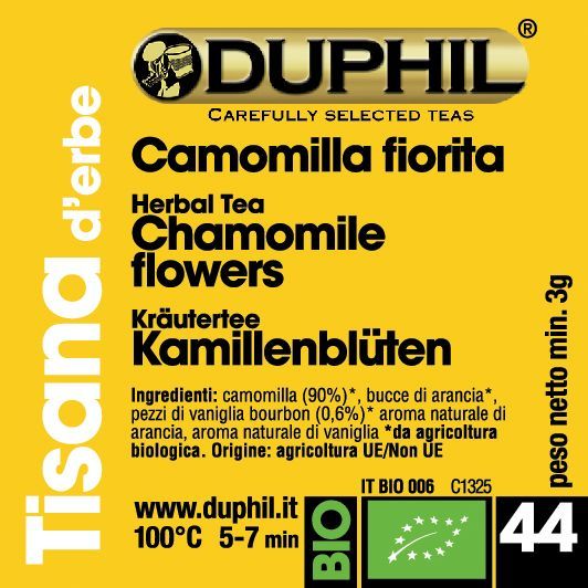 Ingredients: chamomile, orange peels, bourbon vanilla pieces, natural orange flavour, natural vanilla