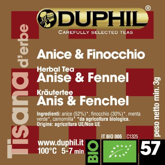 Gusto: anice e finocchio hanno un effetto antispasmodico, digestivo e riscaldante. Il sapore è dolce - speziato. L’abbinamento con la menta verde dona una bella freschezza